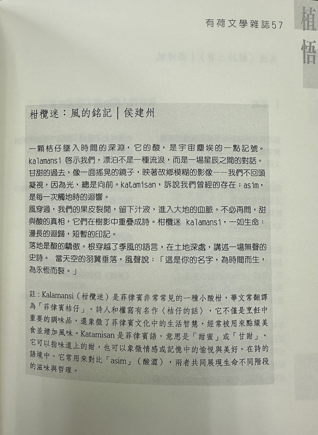 【分享】本系侯建州教師—有荷文學雜誌:柑欖迷:風的銘記